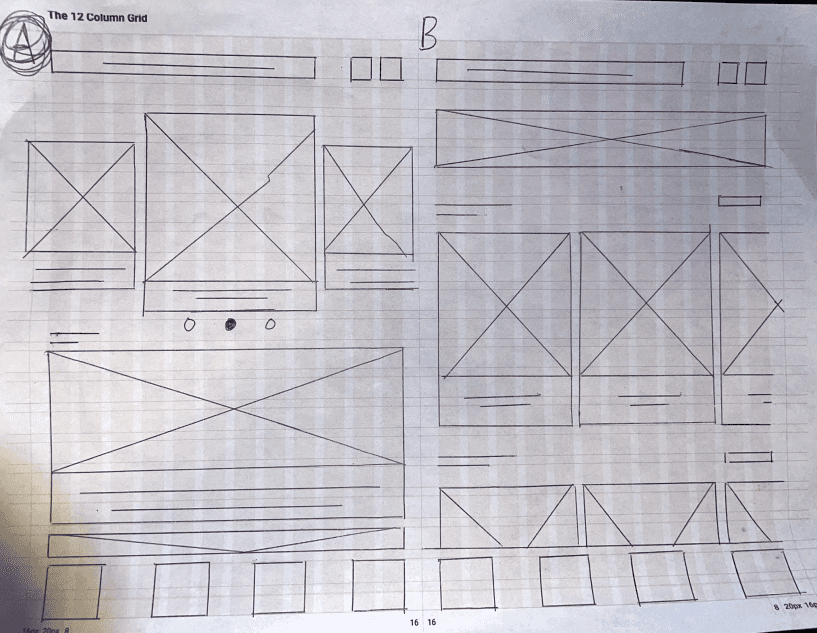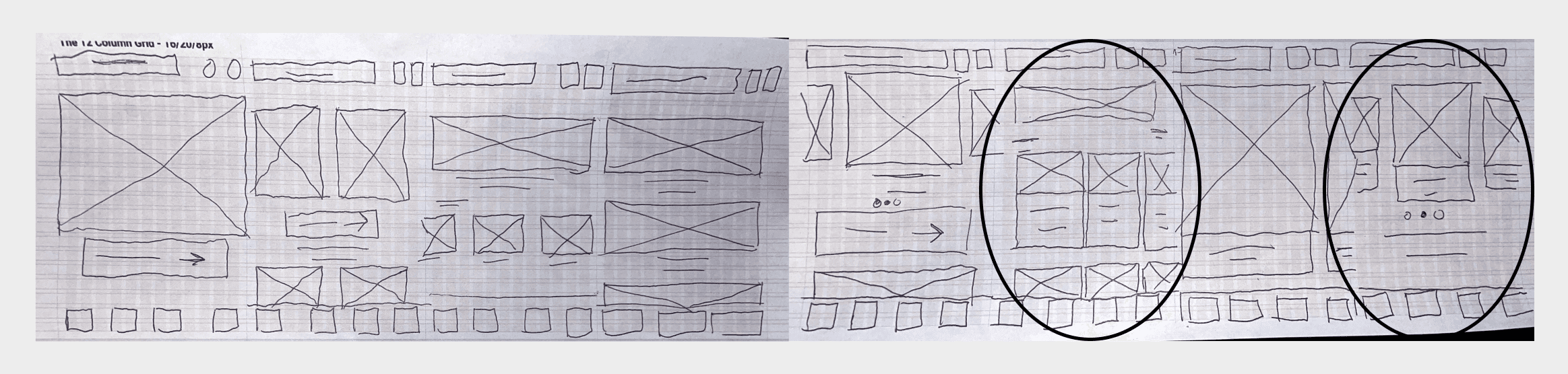 I sketched out some possible homepage wireframes, then narrowed down two of my favourites to refine and A/B test among 5 peers.