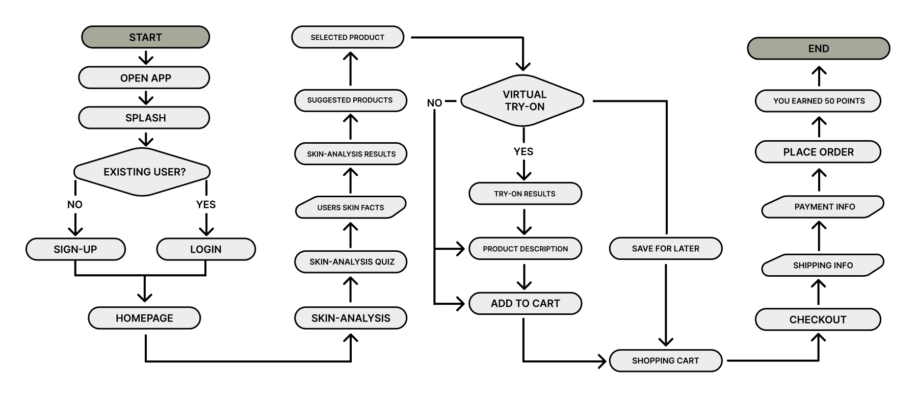 The current cosmetic market is extremely saturated. I aim to create a sleek and modern user-friendly app based on thorough research on consumers' wants and needs and the clients' requested features.