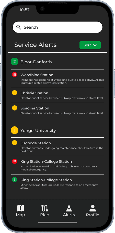Sort service alerts