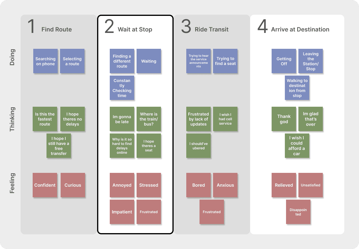 After mapping these out, we identified the “Wait at Stop” phase as the step with the most opportunity.